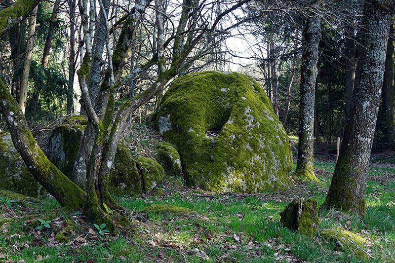 Cette roche situé en abord du GR3 dans un pré, montre un bassin formant un siège sur sa face Nord.