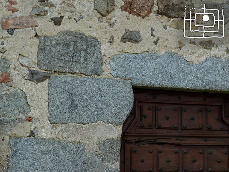 Elle est située à gauche du linteau de la porte d'entrée de la chapelle, a était utilisé en appareillage, face gravée visible.Cette triple-enceinte ou jeu du moulin est gravée dans un garnit gris à gros grain.