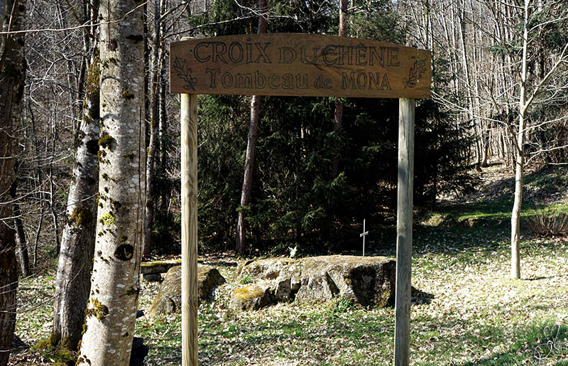 Au bord de la Bareille et situé à proximité du pont autoroutier.Elle est signalée par un panneau indiquant 'Croix du chêne - Tombeau de Mona'