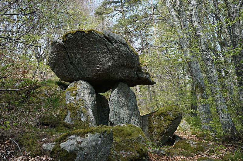 Appelé 'dolmen' par son aspect visuel, il s'agit d'une structure naturelle d'éboulement formant un portique.
