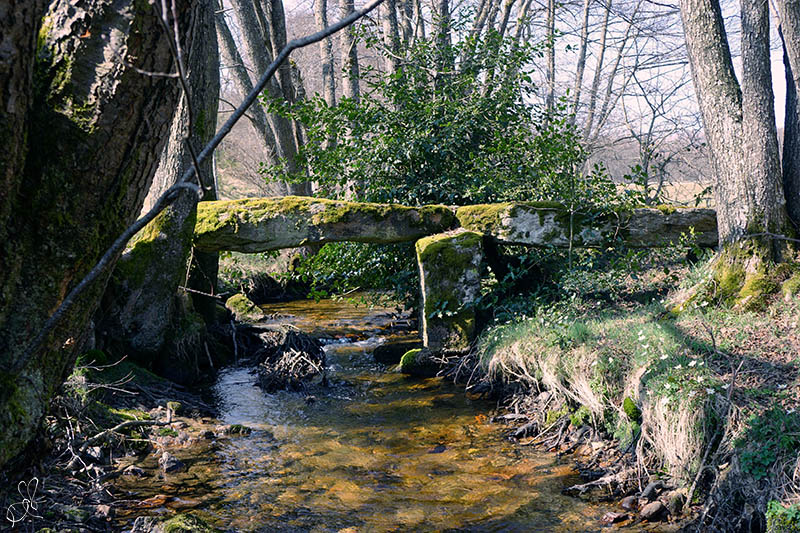 Ponts constitué de 2 grandes dalles de pierres posées sur 3 pilier monolithique enjambant le ruisseau de la goutte bualière.On peut encore deviner l'ancien chemin marqué de part et d'autre par de petits murets en pierre sèche.
