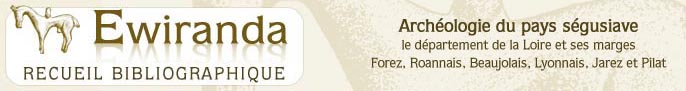 Ewiranda, recueil bibliographique, est destiné aux archéologues et aux autres chercheurs en sciences humaines et environnementales.Dans le département de la Loire et périphérique, Forez, Roannais, Jarez, Pilat, mais aussi du Beaujolais et du Lyonnais en rive droite du Rhône et rive gauche de la Saône [hors Lyon].